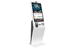 Dispositivo interativo ideal para registo de visitas, inquéritos, marcações ou check-ins automatizados. Design moderno e discreto.